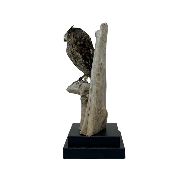 The Eurasian scops owl, also known as the European scops owl or just scops owl, is a small owl in the typical owl family Strigidae.The scientific name of the species was published as Strix scops in 1758 by Carl Linnaeus. The plumage of this bird is grey or reddish-brown with fine black markings. This little owl has two feather plumes on its head. Sometimes these 'ears' are barely visible, but when in danger, it puts them upright. They are almost never seen during the day.