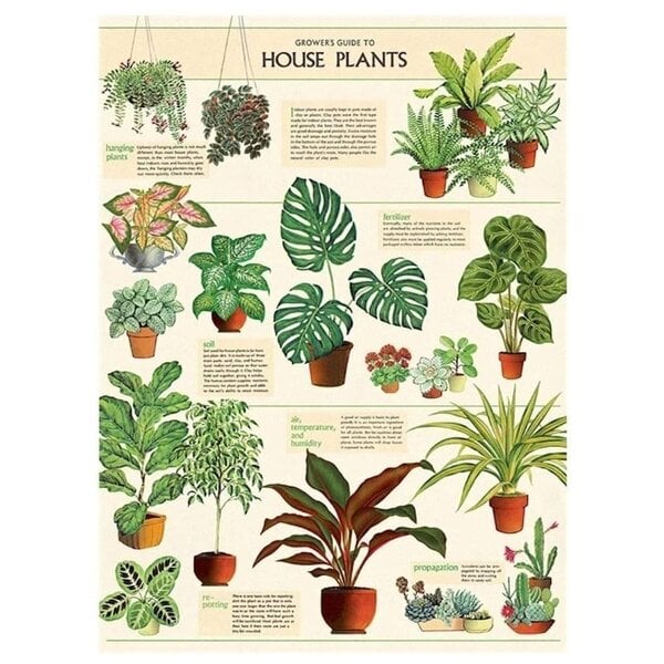 Beautiful school poster with various detailed images of houseplants. This poster, based on antique school posters, is very nice to use as wall decoration. It's an easy way to give your room a vintage look.