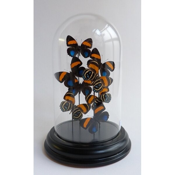 Verkrijgbaar in lijst of in decoratieve stolp. Opgezette vlinders ook los te koop.