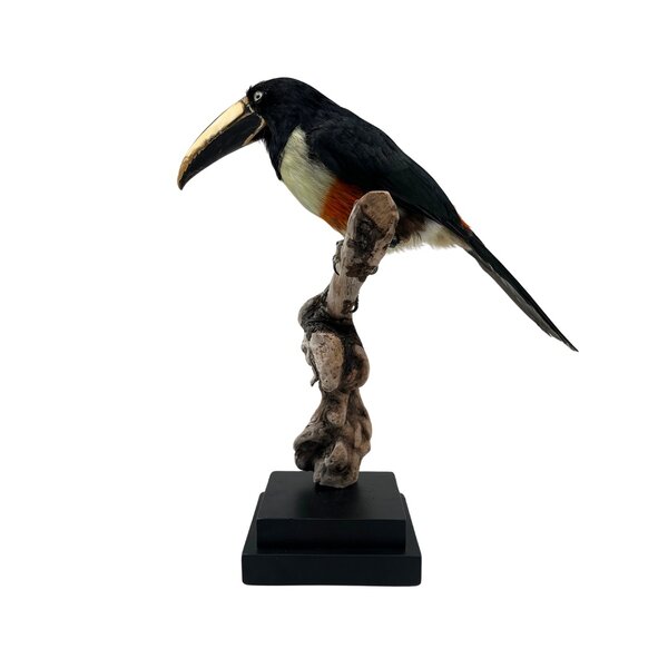 De opvallend grote snavel van de Pteroglossus aracari is verrassend licht van gewicht. Dankzij de holle structuur kan de vogel er moeiteloos fruit mee plukken hoog in de boomtoppen.
