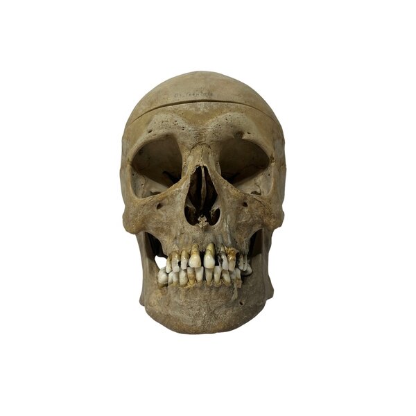 Dit is geen replica, maar een complete, échte menselijke schedel! Vermoedelijk een jong persoon circa 16 jaar.